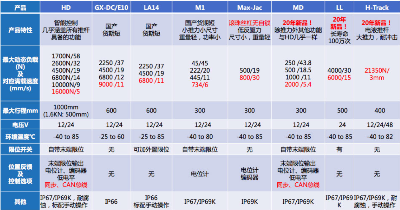 Thomson湯姆森電動(dòng)推桿 執(zhí)行器 電缸 有多種規(guī)格, 具體參數(shù)對(duì)比如下: